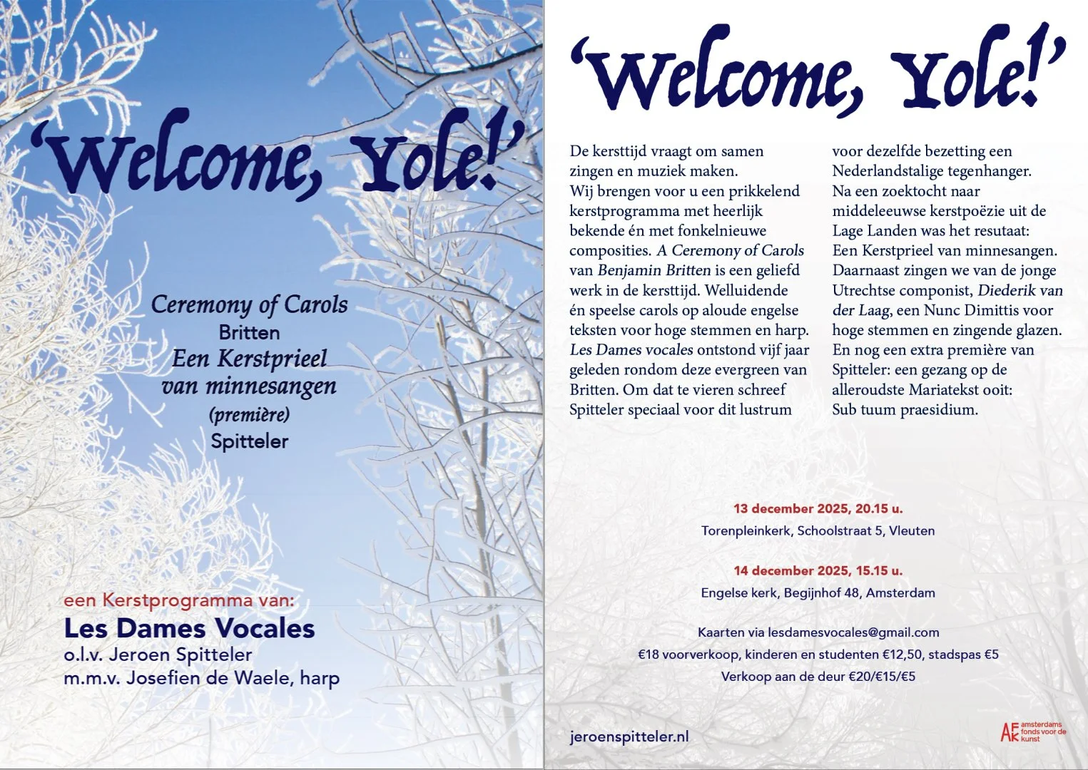 The choir, directed by Adriaen van der Veen, will bring a varied Christmas Concert, with works from Charles Gounod, Heinrich Schütz and Ludwig van Beethoven, as well as a variety of well and lesser known carols from different parts of the world.